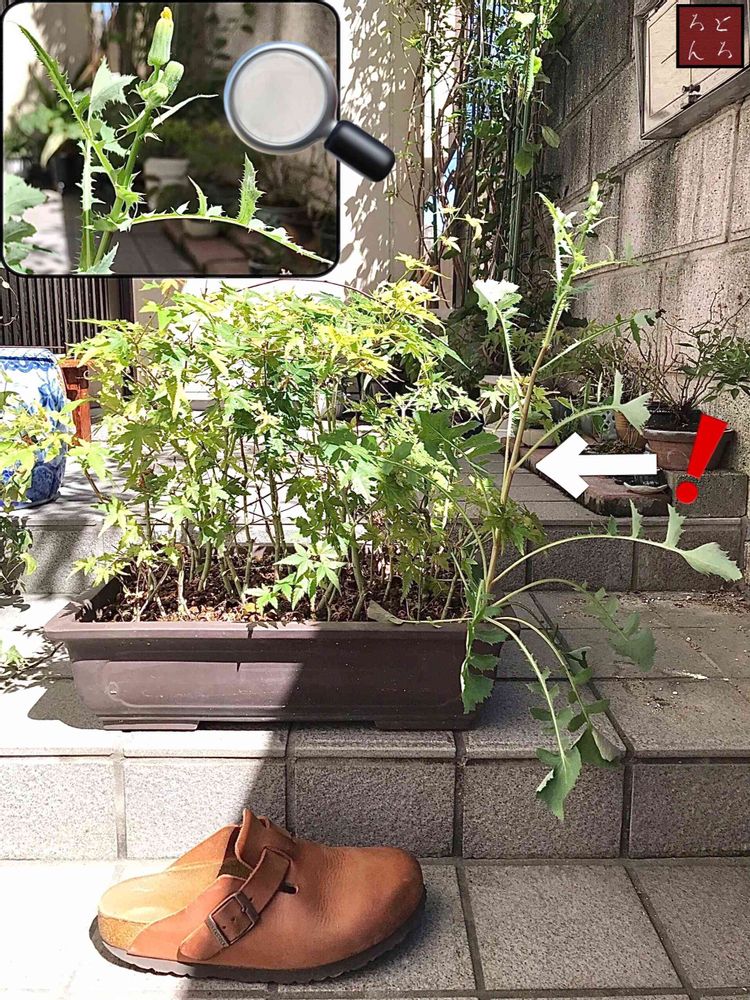 モミジ鉢の中で、大根が育ち始めたのかΣ(゚д゚;)?