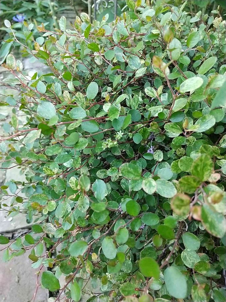 春に切り戻した斑入りのワイヤープランツにちっちゃなお花を見つけました~♡