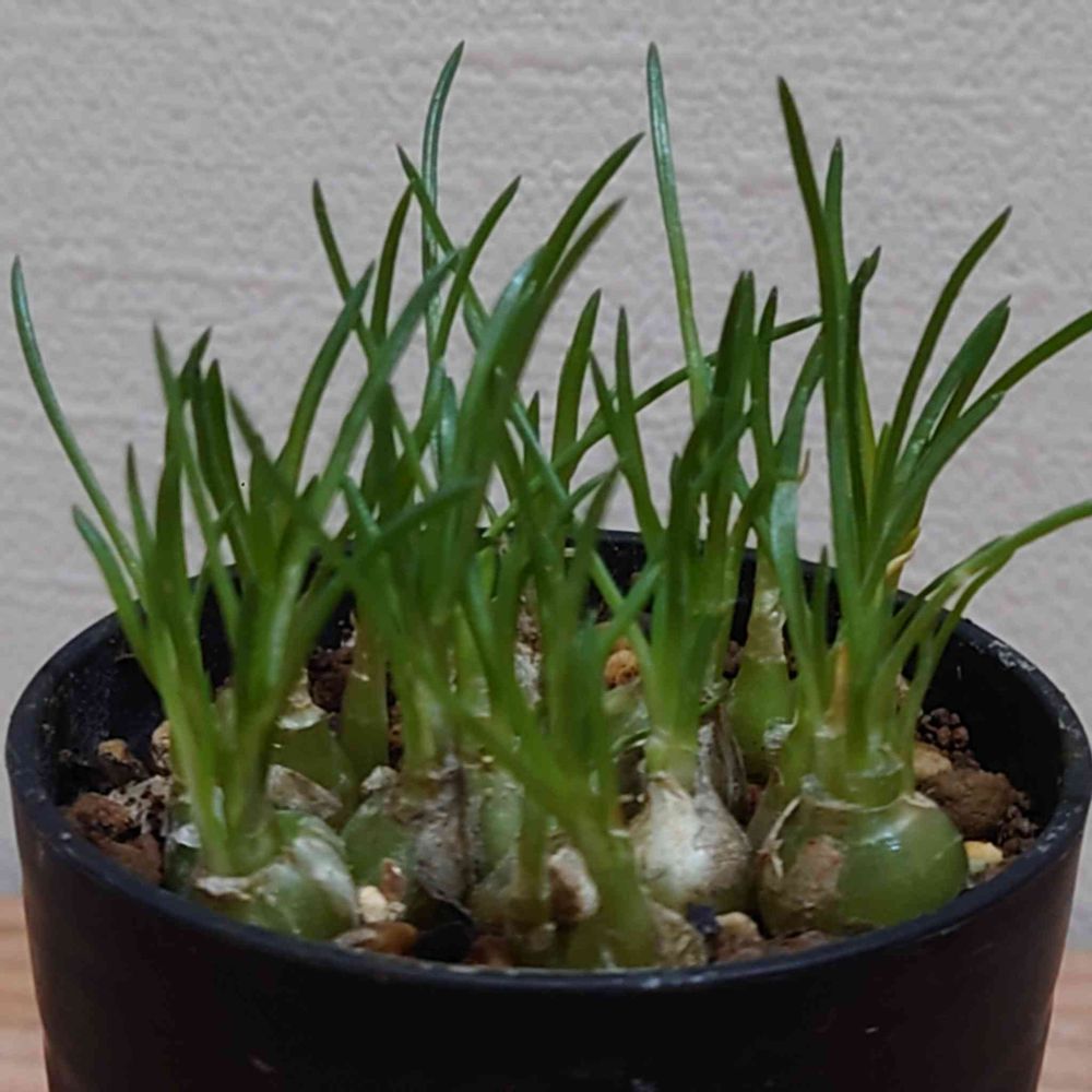 お手入れしてあげたら、皮の下から緑の小玉ねぎ🤣