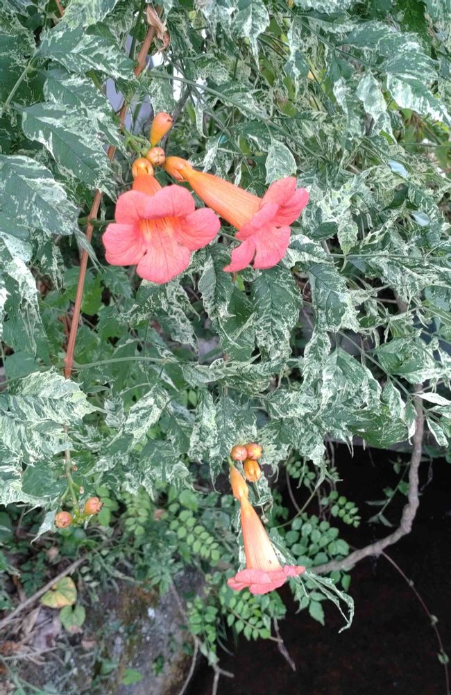 お出かけ先,斑入りノウゼンカズラ,繋がりに感謝✨の投稿画像