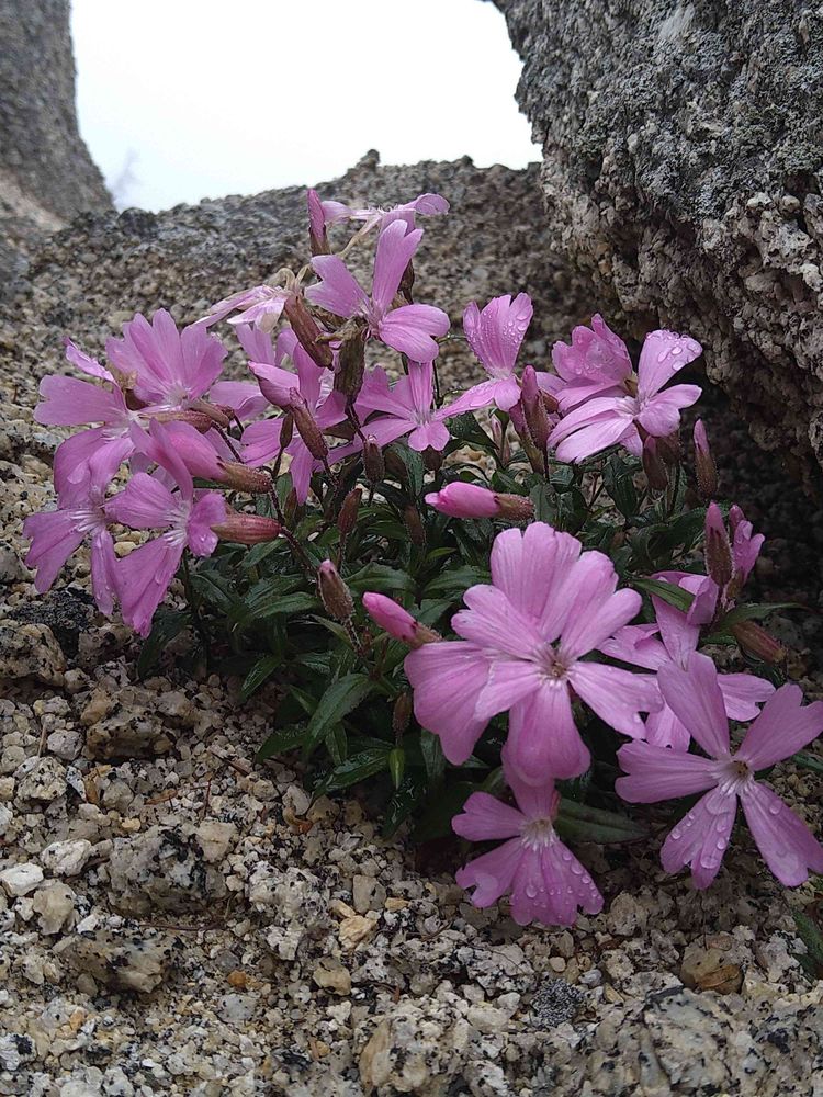 昨年の今頃はホウオウシャジンの撮影にヒーヒー大汗かいて白砂の斜面を登り下りしていました。この花もターゲット。ナデシコ科の大好きな花、やはり高山植物、御影石との相性は抜群、霧の立ち込める中で 2022.8.30 南ア鳳凰山