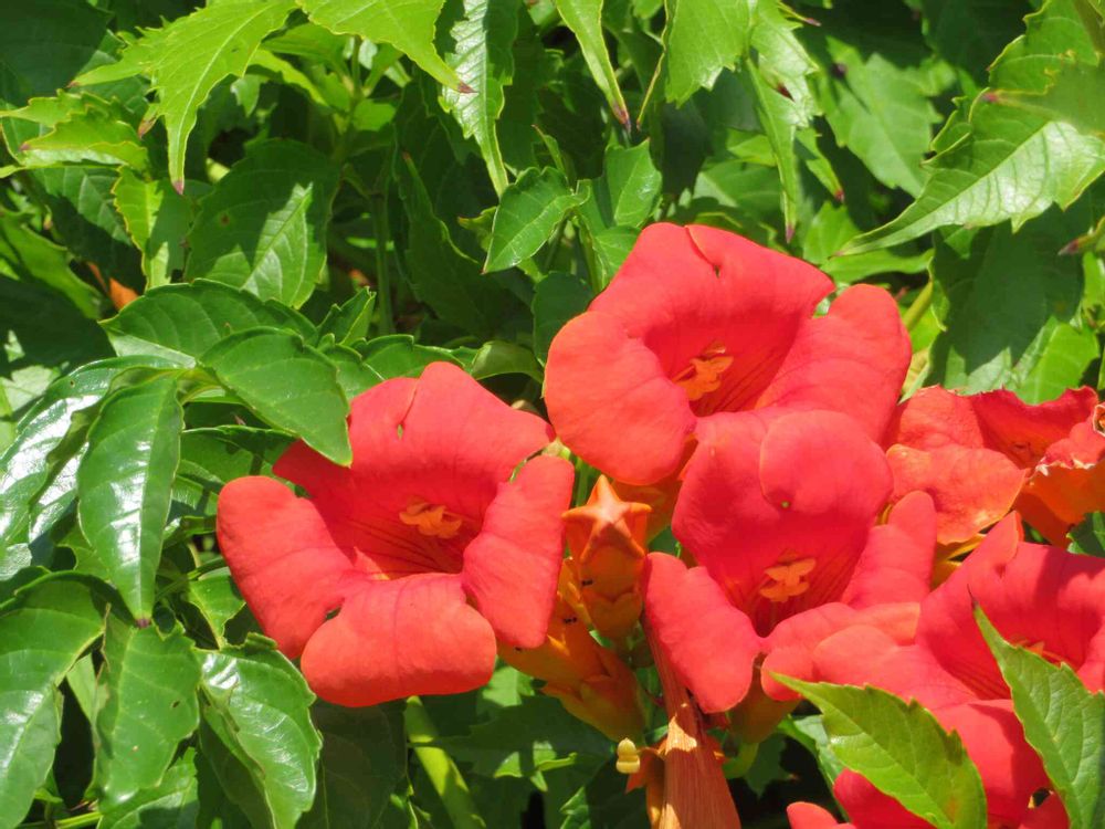 これ程赤いノウゼンカズラは初めて見ましたよ😅
