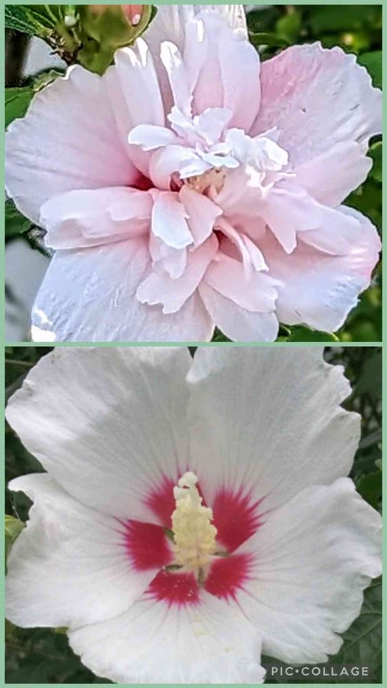 我が家の庭で長く咲き続けているムクゲ2種です。