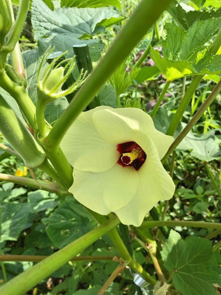 畑,オクラの花,家庭菜園、始めました。の投稿画像