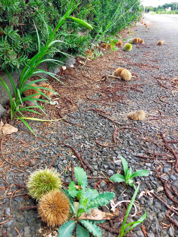 藤沢えびねやまゆり園へ向かう道すがら、足元に民家から落ちた栗の実がポトポトと🌰たーくさん😍