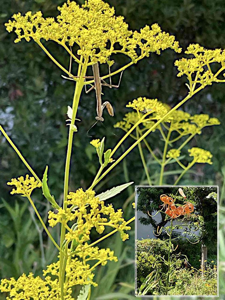 カタバミさんのお出かけ先,オニユリ(鬼百合/テンガイユリ<天蓋百合>),/悠々と身隠すや昆虫1匹、背丈高く鮮か沢山の黄色の花の中/の投稿画像