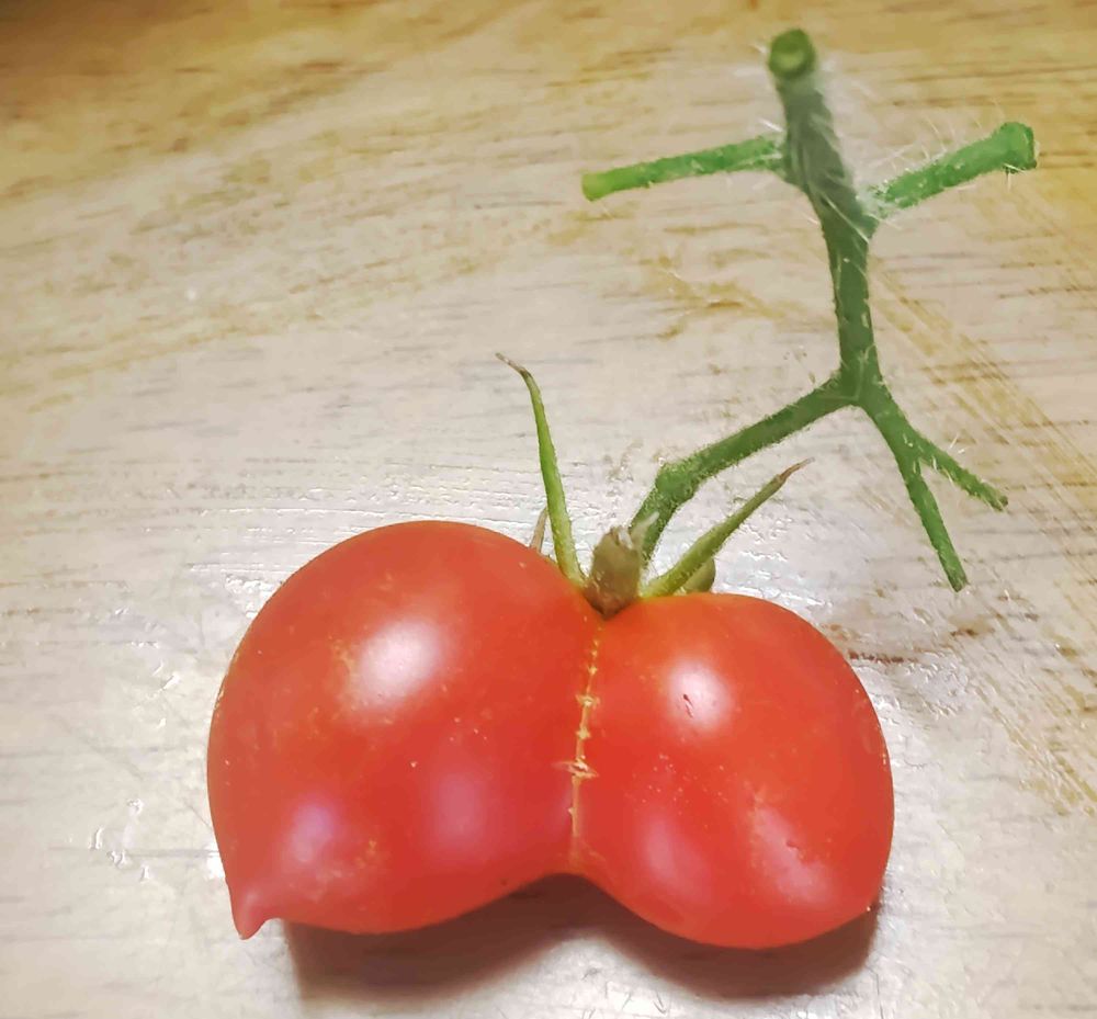 今朝収穫のミニトマトに仲良しさん発見😆💕