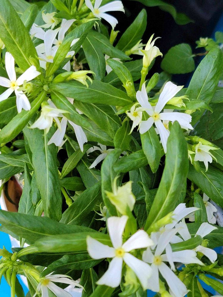 手裏剣✋➰💠の様な、白い装いを見せて咲き誇る、日々草の華やぎ素敵です😆🎵🎵