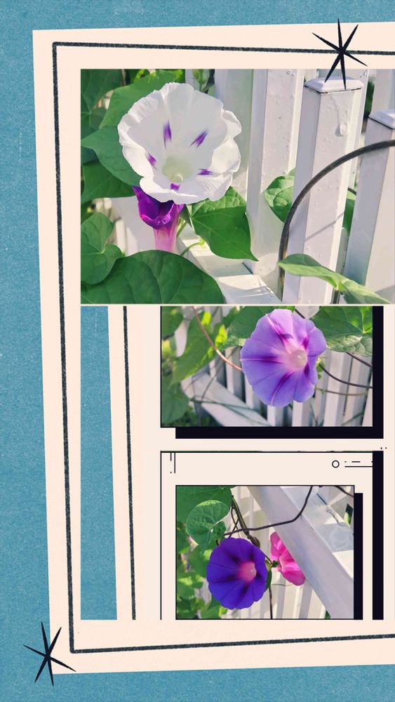 学名: pomoea nil (アサガオ)、Ipomoea tricolor (ソライロアサガオ)
