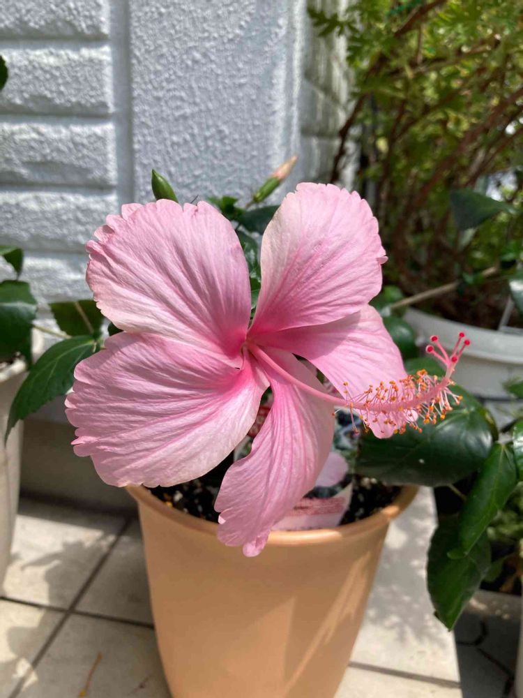 大輪に見えますか?🌸 実は普通くらいの大きさです 今まで咲いていた他のハイビスカスは だんだんお花が小さくなってきました🫢