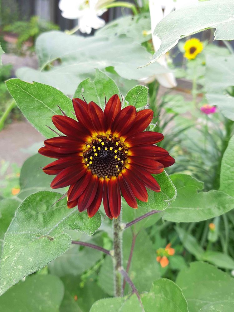 噂に聞いていた赤いヒマワリ🌻