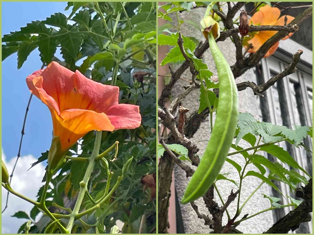 ノウゼンカズラの実が巨大なエンドウ豆みたいだなんて、はじめて知りました❗❗