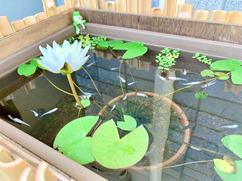 睡蓮とめだか