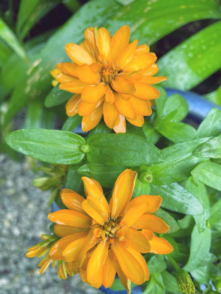 雨粒で°🫧・*:.。.☆艶々なジニアさん💛🍃