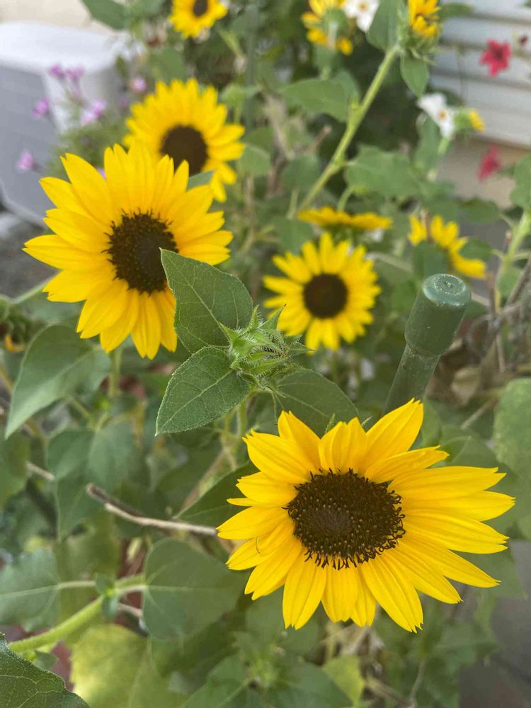 鉢植えの多花性ヒマワリ アポロン。うまくギヤチェンジできたみたいで、お花が増えてきた!