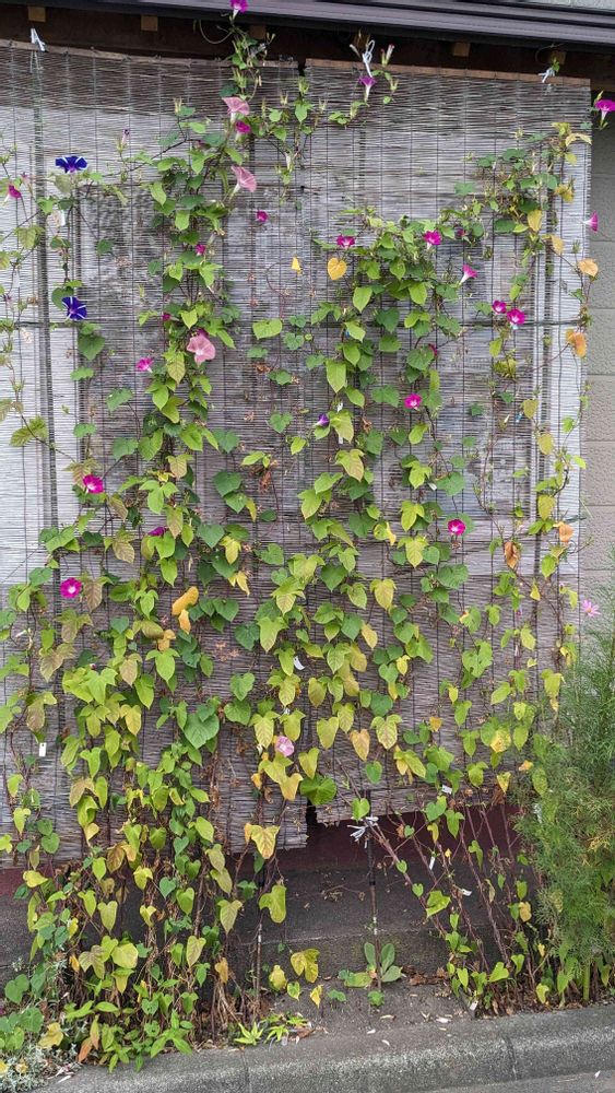 團十郎と思われる朝顔なんかも混在する暖簾式のグリーンカーテンでした。
