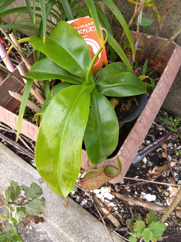 食虫植物、ウツボカズラ。かなり元気に成長してる模様。たまにダンゴムシ放り込んでる。