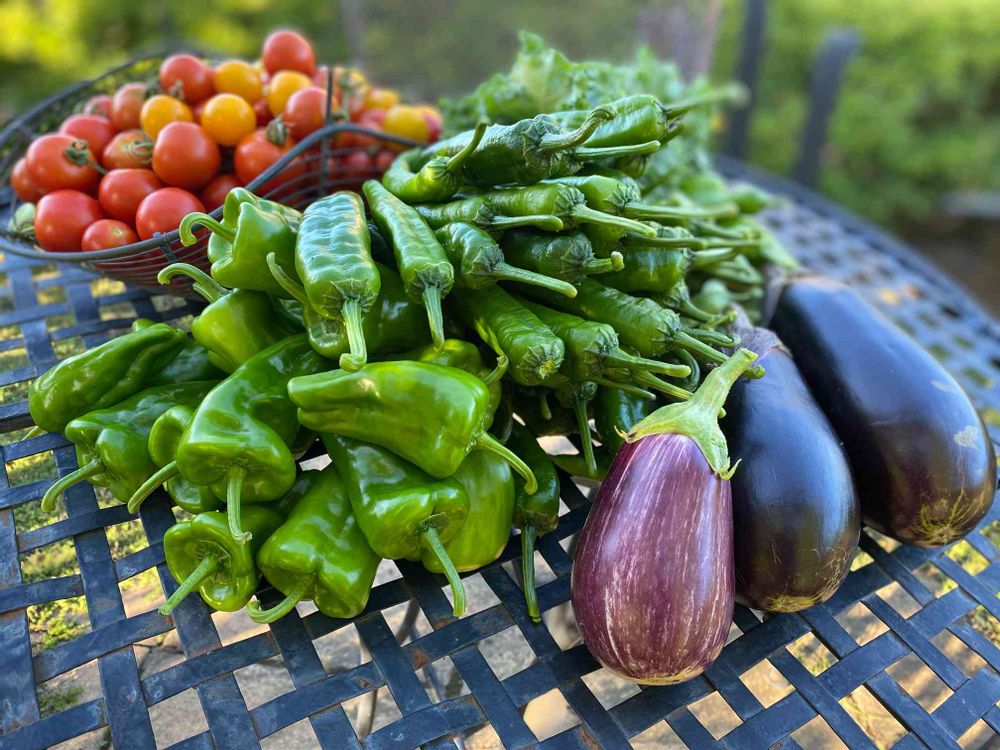 🍆にシシトウ、ピーマン、🍅どう調理しようか