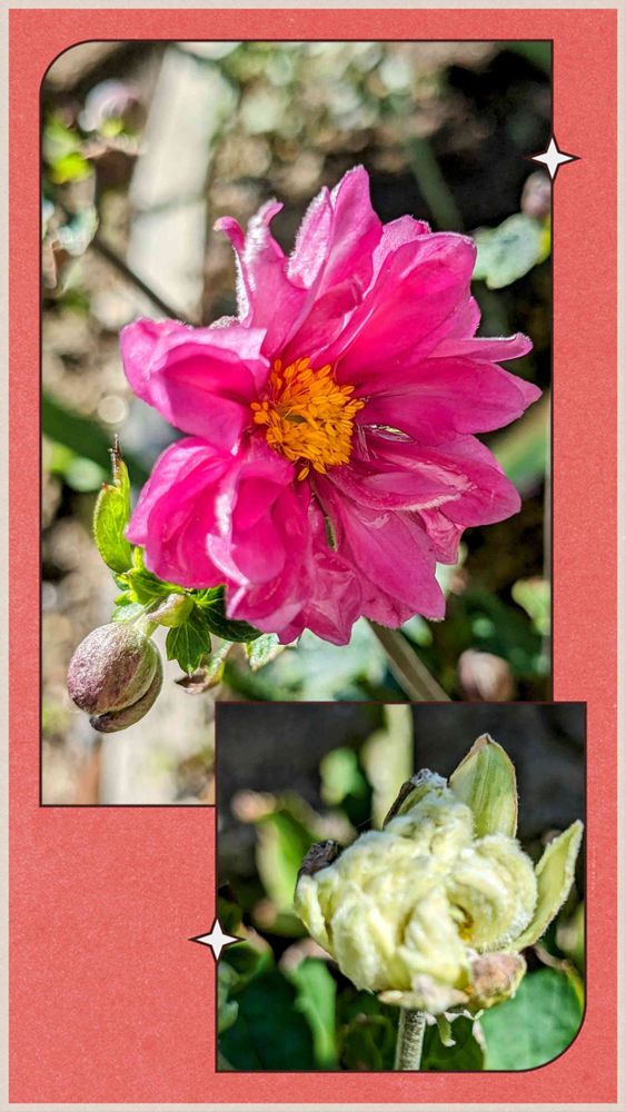 秋明菊の赤、2番花、白の蕾なかなか開かない🤔