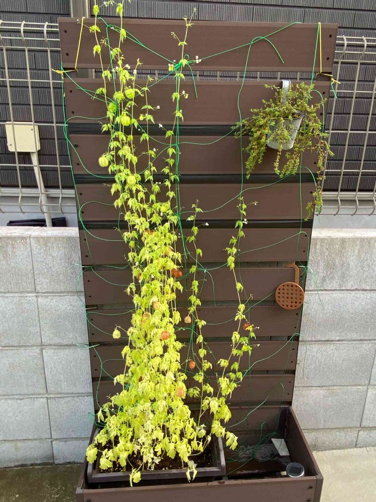 6月にまいた風船かずらが伸びて種もでき初めています。 一日中日が当たる場所 この酷暑のせいか葉の色が薄い気がしますが...