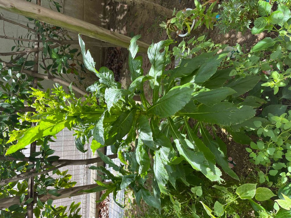 この葉っぱは何ですか?花みたいなのが上にあります。