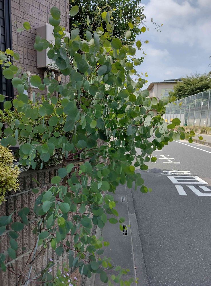 玄関前でどんどん成長しているユーカリポポラス。すぐ大きくなるので交通の邪魔だとダンナがしょっちゅう切っているので、葉っぱの成長が様々ですが、丸型やハート型の大小の葉っぱが風にそよいでいる様子もまた可愛いです。❀( ⸝⸝•ᴗ•⸝⸝ )❀