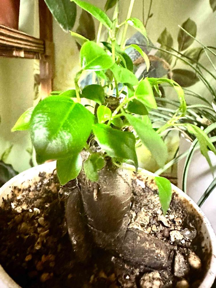 葉っぱが落ちて丸坊主になったガジュマルくんを部屋に入れてやっと葉っぱが🌱出てきました❣️