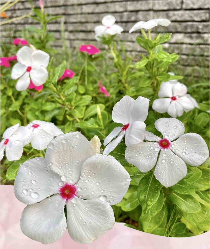 日々草のお花が次々咲いてます❀.*・゚🤍💗