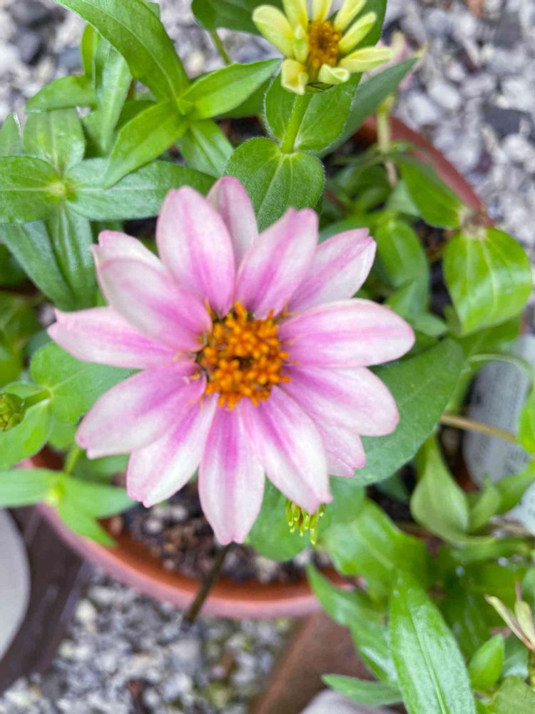 私の庭のジニアは種から育てましたが今のところピンク1色です。