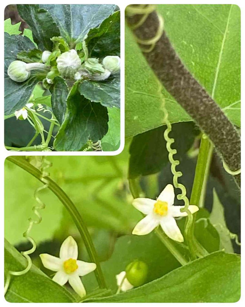 実はお手入れ出来ていなかったので、裏庭なのですがスズメウリさんあちこちで蔓延ってます😅