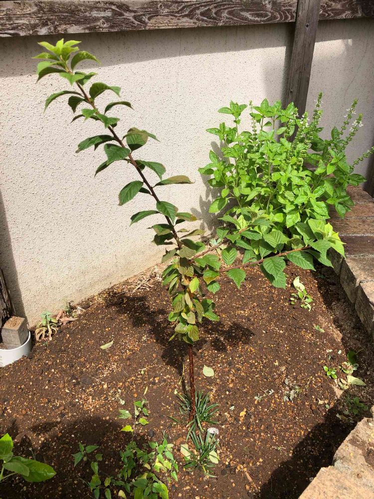実家から持ってきたユスラウメの木が