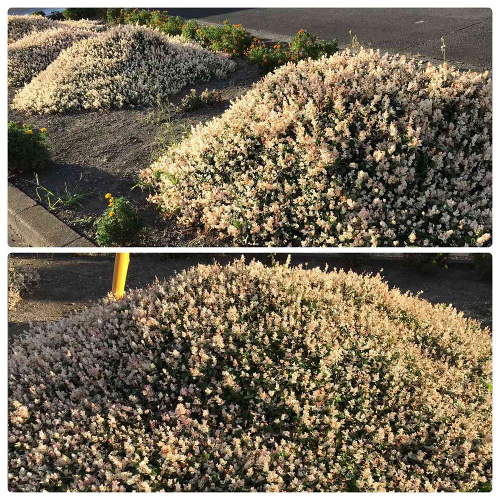 道端の花壇に、白ピンクの小山が等間隔でポコンポコンと。