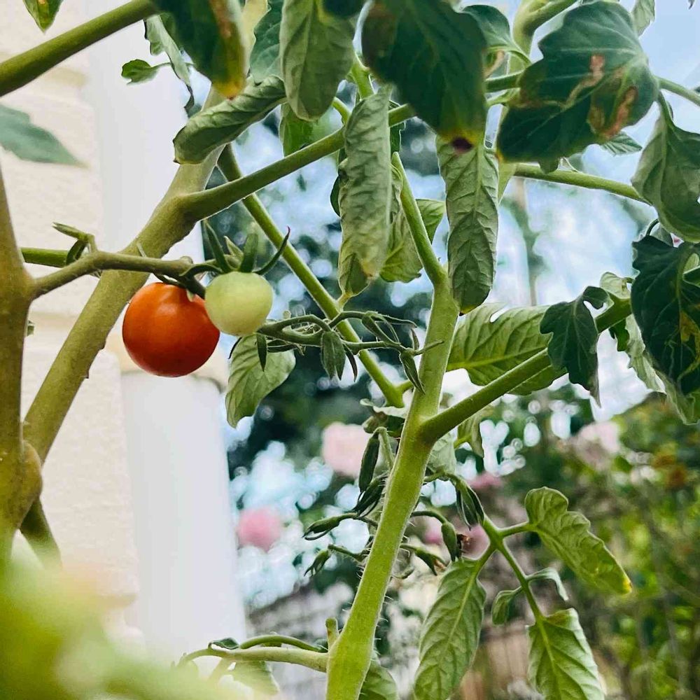 初めてチャレンジしているミニトマト、やっっっと1つだけトマトっぽくなりました😆🍅✨