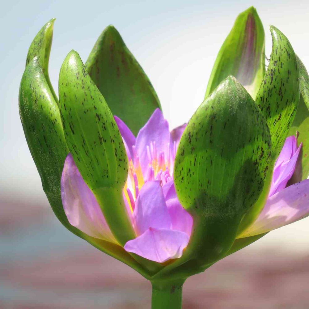 晩は🤭♪温室内ですよ!このコ🪷もお盆の時は咲いて無かったが過去から引っ張ってきました!🤭萼が特徴的な熱帯睡蓮です🤭