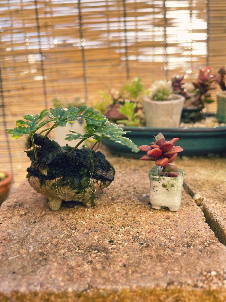 鉢は七輪陶芸で簡単に焼きっぱなしなので苔むしすぎな豆鉢でした😅