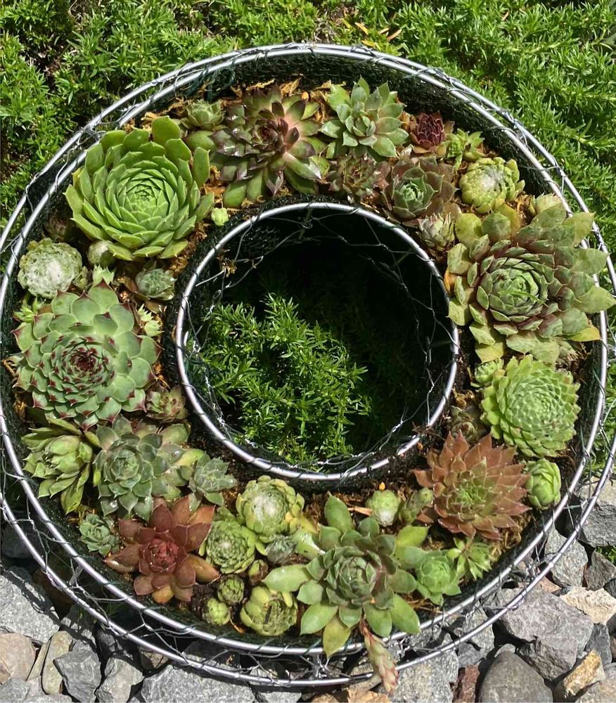 地植えセンペル花壇がワサワサでえらいことになってたので、間引きを兼ねてセンペルリース作ってみました(*´艸`*)