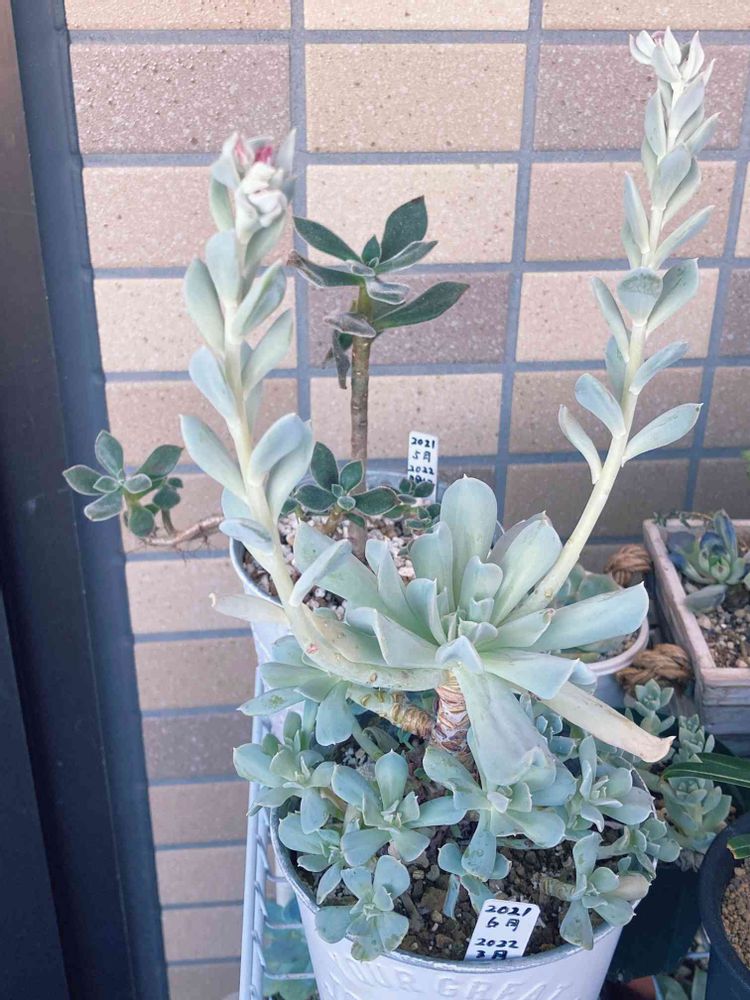 子株と共に下葉は枯れましたが、元気な花芽を伸ばしています✨