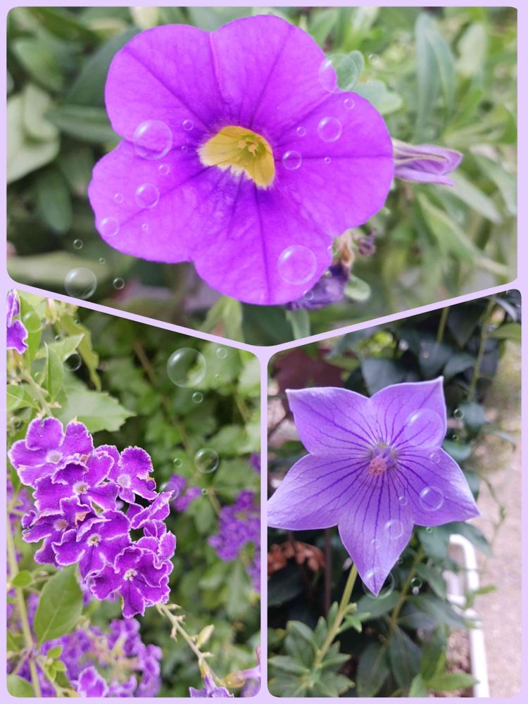 紫のお花,シャボン玉,コラージュ仲間達の投稿画像