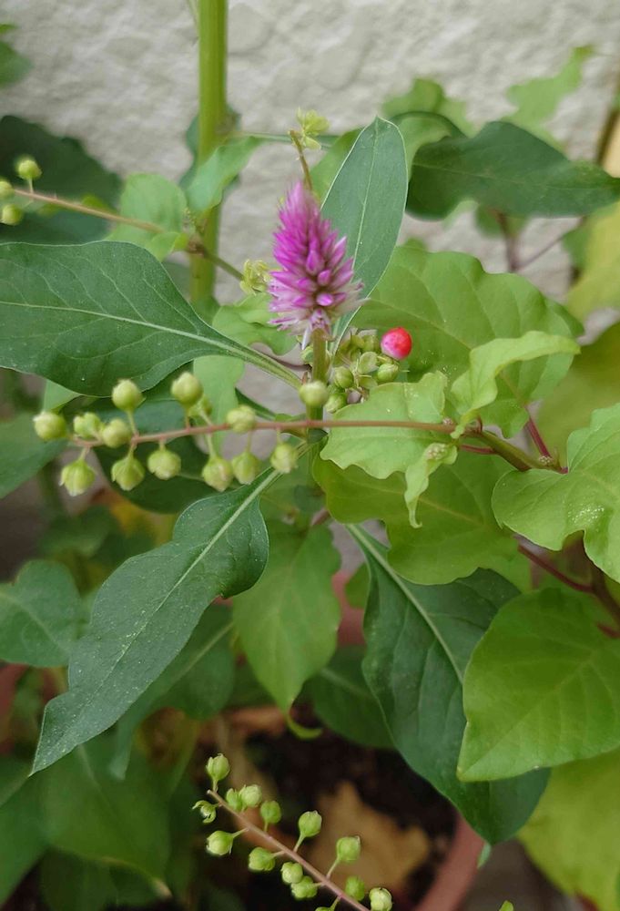 ジュズサンゴのなかに、無理やり割り込んできたちびケイトウでした🤣