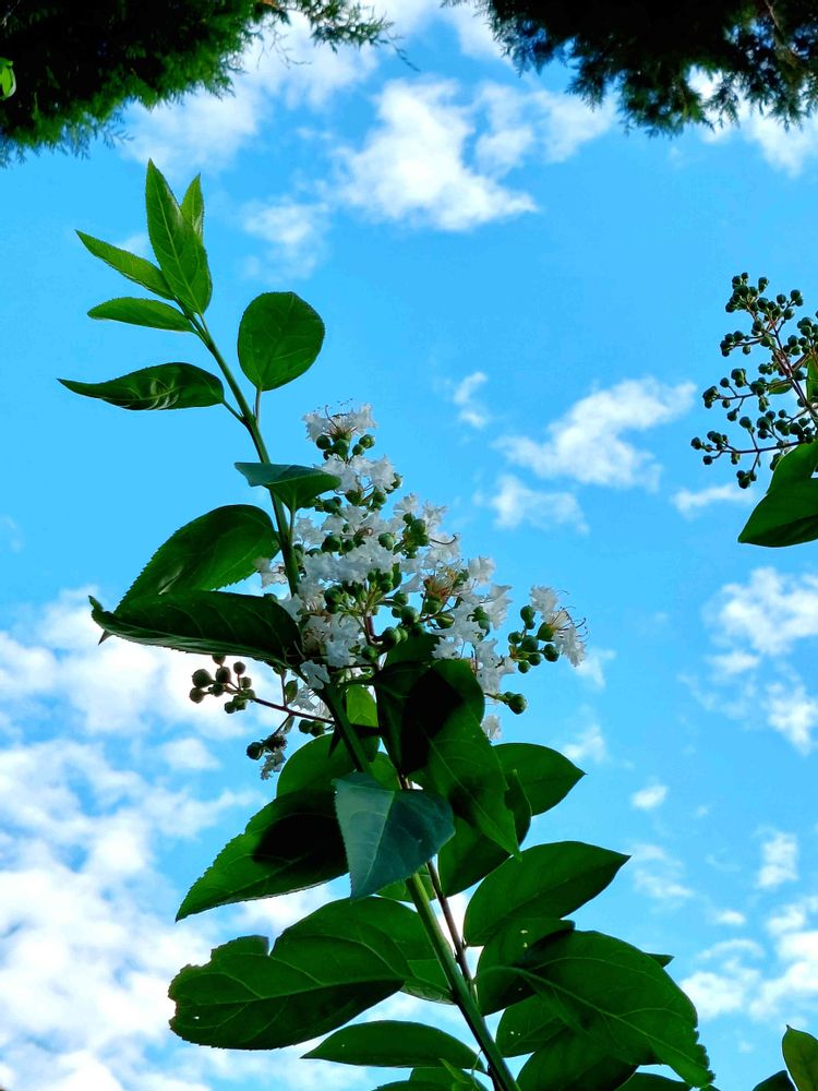 いやー、素敵🤍青空と白い雲に白いサルスベリ🤍