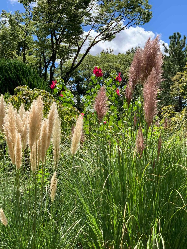 パンパスグラスとコダチフヨウどちらも背が高くて伸び伸びしています✨