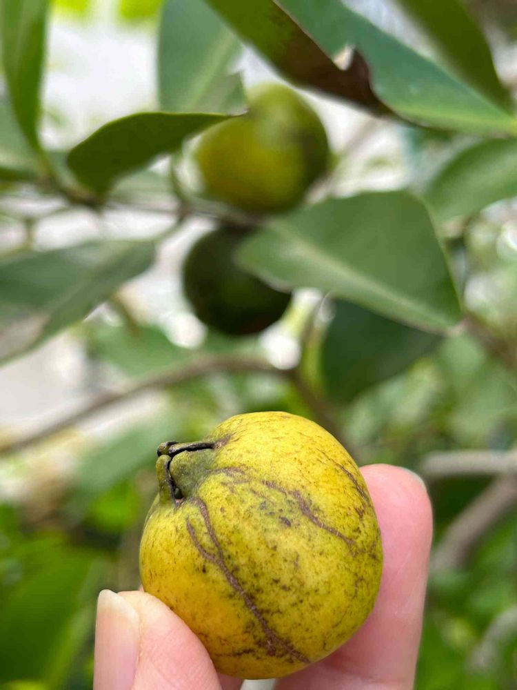 サガリバナの木の下にあるイエローストロベリーグワァバ🟡一つだけ収穫できました♫