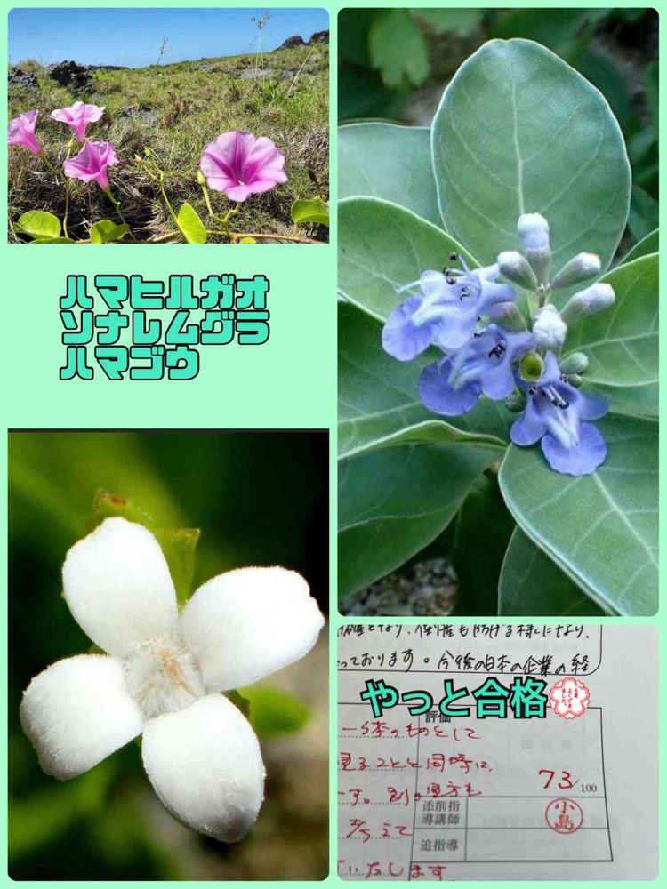 先生のコメントだとハマヒルガオだけど、もしかしたら違うかもなんて思いました💦今度調べてみますね😉 ソナレムグラは牧野富太郎さんが名付けたみたいですよ。こちらもゆっくり調べてみますね(*^^*)ハマゴウは小さい頃浜辺でよく見かけてました😊