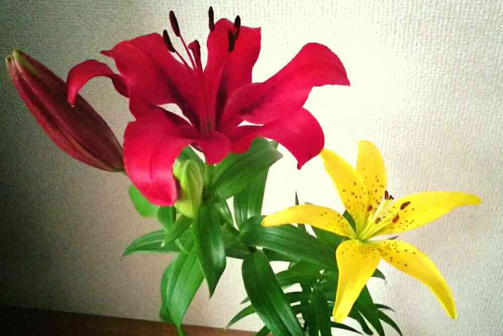 赤はヒメユリ系の園芸品種、黄は名前の通りキヒメユリのようです(^^)