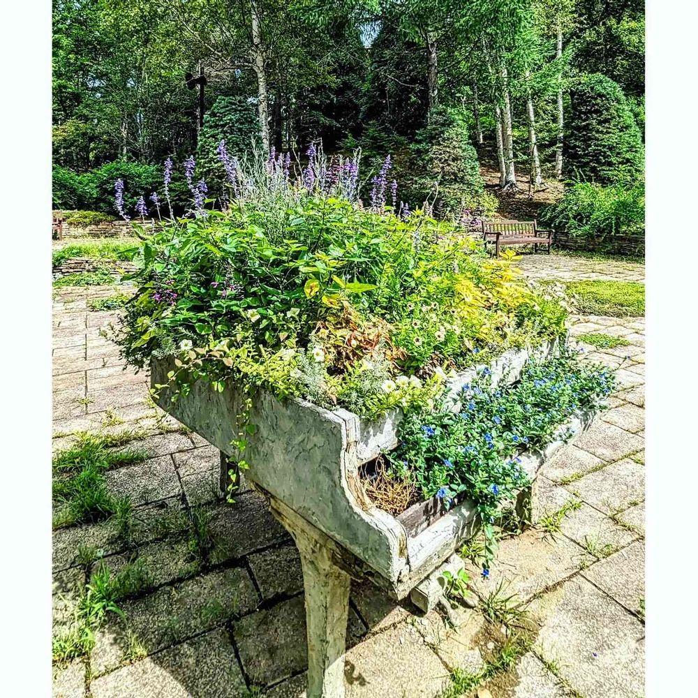 「花人の隠れ家」のシンボルのピアノ型花壇。春・夏 色んな花が楽しめるエリアなんですよ🤗🩵💚🩷