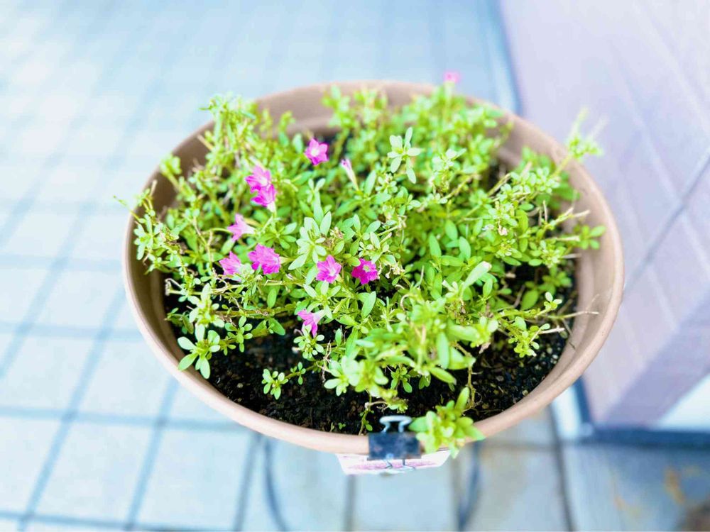 サフィニアプチさくらもこもこ 、切り戻してからそんなに経ってないのですが、もう少しずつ咲いてきました。下葉も少しずつ新芽が生い茂ってきてます。