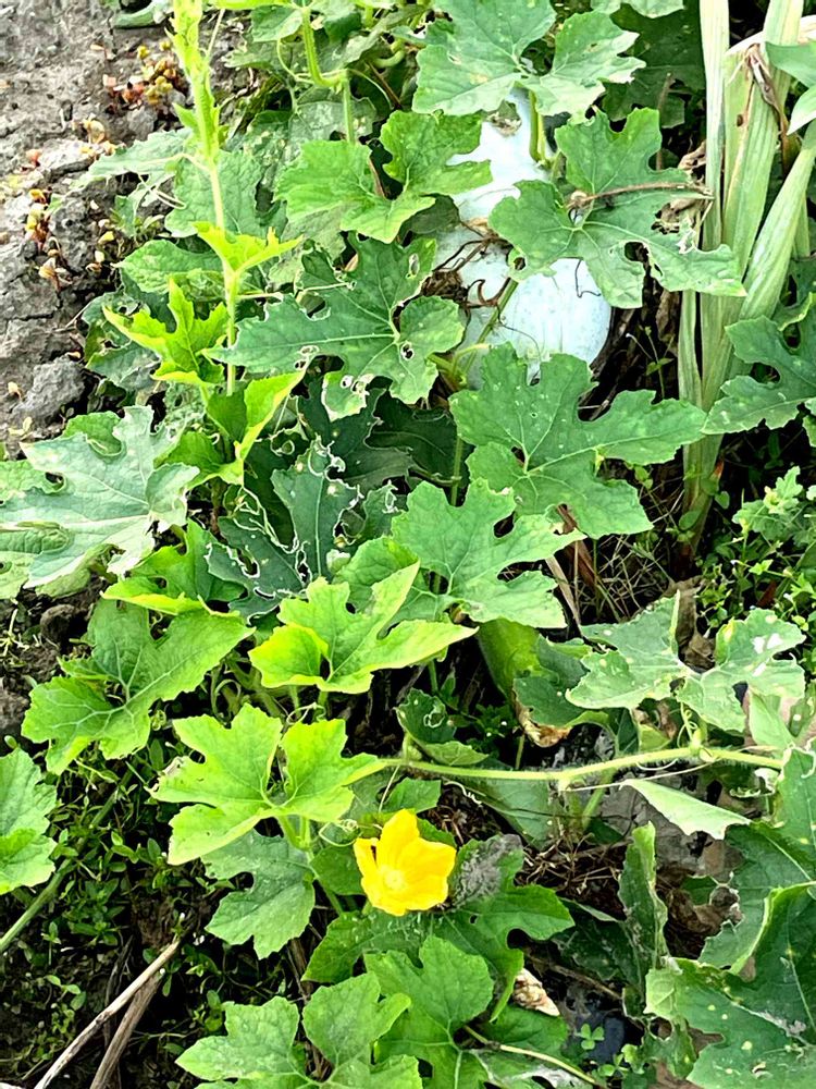 朝の散歩道,通り道のお宅の畑に,瓜の花と実の投稿画像