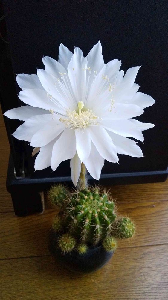 私もみなさんのをみて欲しくなり、初めてダイソーで買った🌵がこれでした😊中々咲かなくて、今年ちょっと栄養をあげたら、いつの間にか見えないところに蕾が出来ていました😁確か3年はたっていたかも~🙄咲いたときは嬉しかったですよー😊1日しか咲かないという🌵なので、見逃さないようにしていました🤭皆さんに見て頂けてホント良かったです✌️ありがとうございました