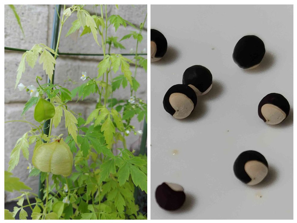 フウセンカズラ🎈お花も風船状態も可愛いけど、又種が丸い黒のなかにハートが何とも可愛い❤️ですよね🐱
