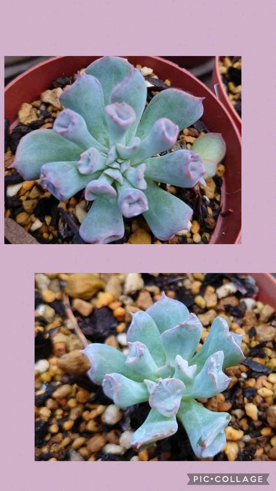 去年9月に、初リエールフェスから迎えた【トランペットピンキー】の下葉の先が半分枯れてたものを3枚、ダメ元で挿してたら、1年でやっとここまでになりました❣️カワイイ(,,> <,,)♡